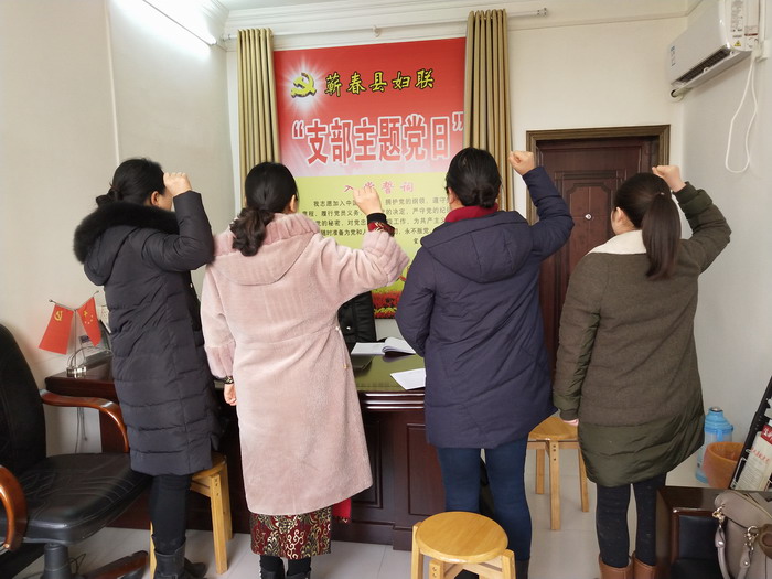 2月5日,黄冈市蕲春县妇联开展了“学习贯彻十九大,聚气凝神谋开局”二月份支部主题党日活动。在蕲春县妇联主席、党支部书记张志凤的带领下,全体党员首先完成了党费收缴、齐唱国歌、重温入党誓词、诵读党章党规等规定动作,组织学习了1月5日习近平总书记在学习贯彻十九大精神研讨班开班式上的重要讲话精神,重点传达学习了全省“两会”主要精神。