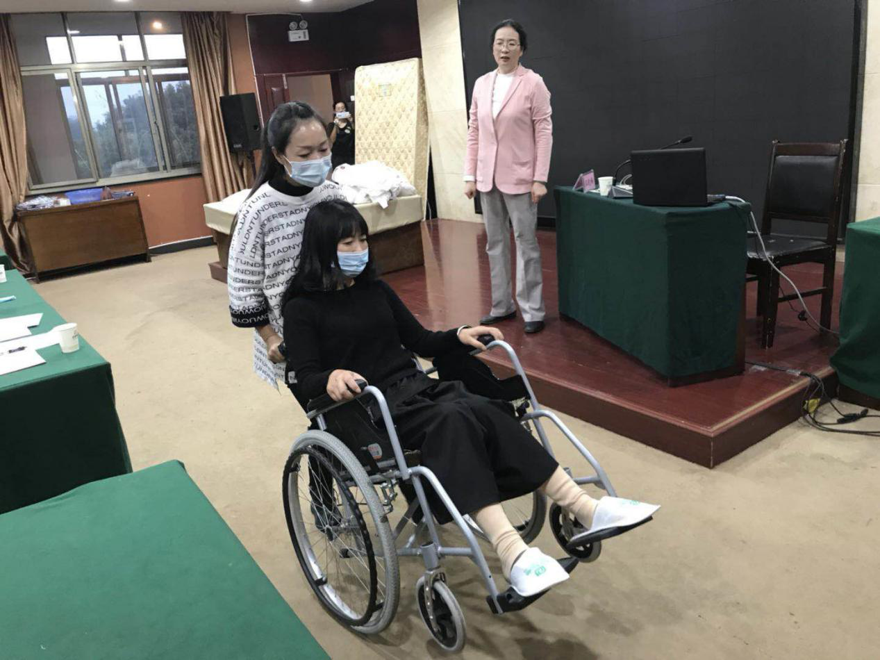学员实操演示居家养老轮椅转换