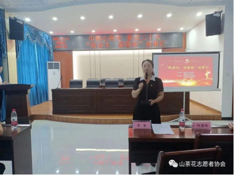 为引导创业就业困难妇女听党话、感党恩、跟党走,以实际行动迎接党的二十大胜利召开,阳新县山茶花志愿者协会在园博园社区举办“巾帼心向党 喜迎二十大”·“我奋斗 家国美”故事汇宣传教育活动,带领大家观看了家风宣传片,还邀请了四位巾帼宣讲员为大家讲述党史故事。