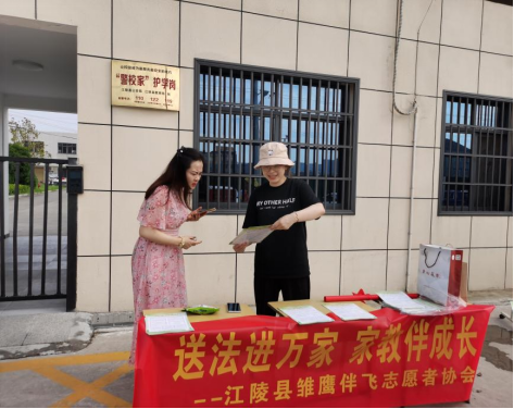 为推动《家庭教育促进法》的贯彻实施,营造全社会重视支持家庭教育的良好氛围,江陵雏鹰伴飞关爱留守儿童志愿者协会走进江陵县郝穴小学开展《家庭教育促进法》的宣传活动。