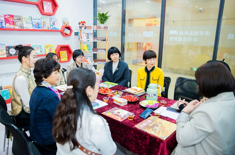 门口鲜花绿植生机盎然,背景音乐轻柔舒缓,大屏幕上滚动显示着二十余项活动安排,参与活动的妇女儿童在楼内,或沉浸阅读、或驻足观展、或乐享文体活动、或体验生活美学……
