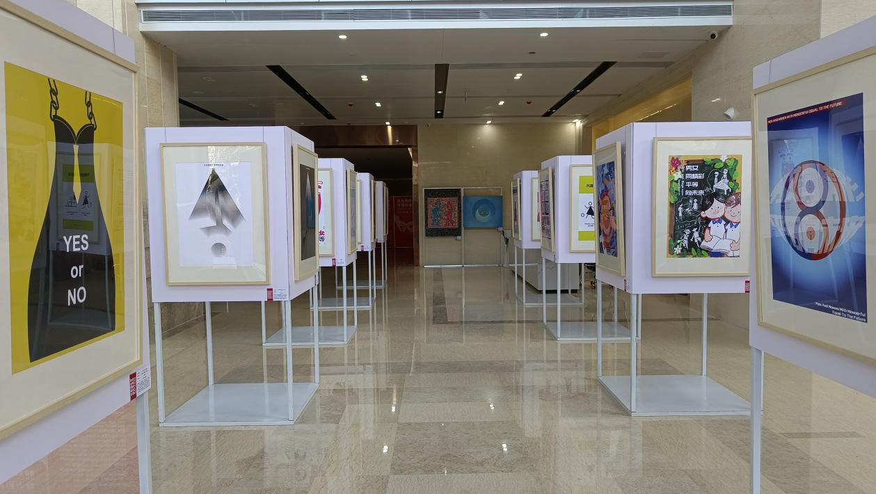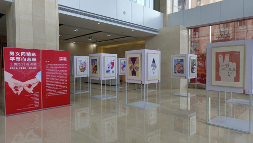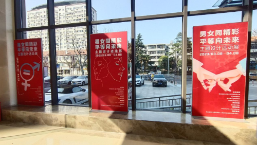 2023年3月8日,湖北省大学生“男女同精彩 平等向未来”主题设计展在湖北省妇女儿童活动中心开展,大学生们用自己的作品表达当代大学生对男女平等的理解和看法。