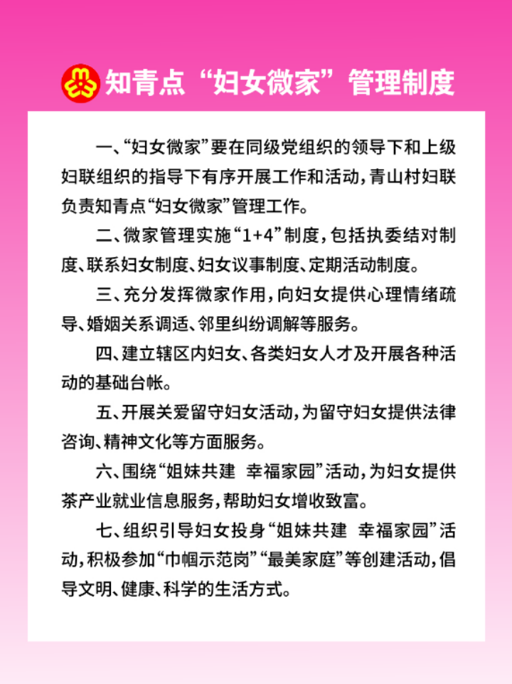 明确工作职责。引导“微家长”结合实际制定“微计划”、明确思想引领、纠纷调解、弘扬美德、创富培训等“微职责”。将村里女能人、女党员、热心妇女群众吸纳进微家担任成员,协助“微家长”开展工作。建立微家成员结对、走访联系妇女、定期议事等“微制度”,提升微家管理水平。