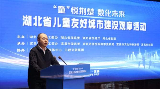 为深入学习贯彻党的二十大和二十届三中全会精神,推进儿童友好城市建设工作,推广、复制、扩大可持续的儿童友好城市建设举措和试点项目,10月31日,湖北省妇儿工委办公室、省发改委、省住建厅联合举办的“‘童’悦荆楚 数化未来”湖北省儿童友好城市建设观摩活动在宜昌举行。省妇儿工委副主任、省妇联主席肖红梅,省妇儿工委委员、省妇联副主席李燕,省发改委二级巡视员胡圣清,省住建厅二级巡视员卢修华出席活动。