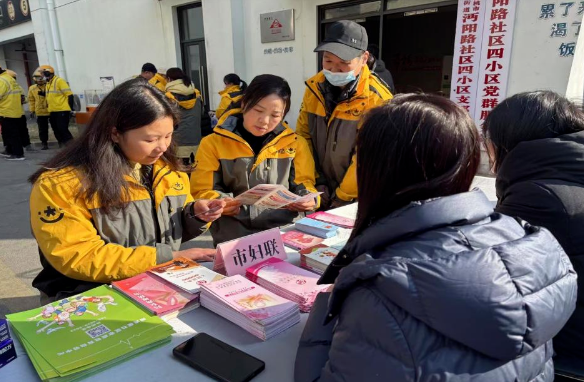 在汉川市汉海商圈开展的“群团携手进驿站 服务群众到一线”活动中,市妇联工作人员现场发放女性权益知识保护、家庭教育等宣传资料,为外卖女骑手、网约家政员等新就业形态劳动者赠送暖“新”关爱包。