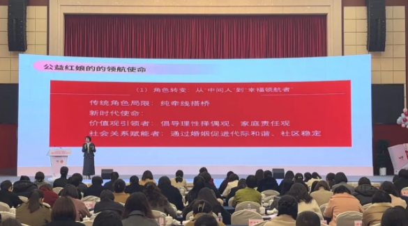 为进一步壮大公益红娘队伍,更好地服务单身青年群体,广泛吸纳机关企事业单位政工人事干部、妇联干部、退休干部等社会各界热心志愿者加入公益红娘团,组建“万人红娘团”,通过“红娘与青年”“红娘与红娘”“红娘与家长”之间一对一深入沟通,帮助青年精准匹配契合度高的心仪对象。现场公布“公益红娘”名单,并为“公益红娘”代表颁发聘书。