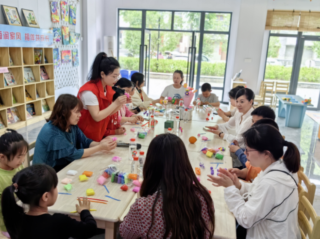 赤壁市羊楼洞村,爱心妈妈正在带领孩子们做手工。