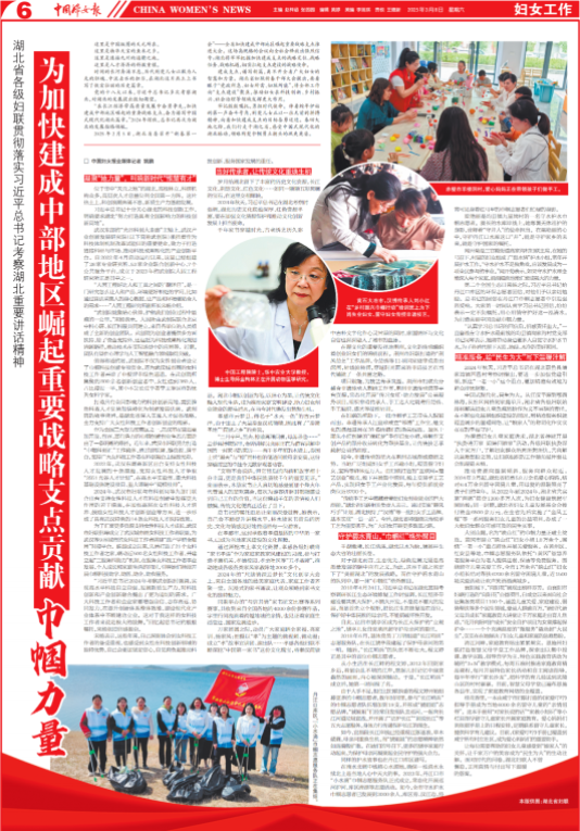本文来自《中国妇女报》2025年3月8日6版,原题为《为加快建成中部地区崛起重要战略支点贡献巾帼力量 湖北省各级妇联贯彻落实习近平总书记考察湖北重要讲话精神》。