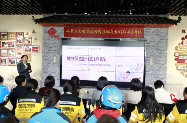 东风随春归,温情满江城。10日下午,省总工会、省妇联联合主办的“情系女职工 驿站有爱”湖北省女职工普法宣传活动——新就业形态女性劳动者专场在武昌区中华路街都府堤社区区域性职工之家(工会驿站)举办,正式拉开在全省121家“群团联动”示范工会驿站开展女职工普法宣传的序幕。省总工会党组成员、副主席赵林,省妇女联合会党组成员、副主席秦莉出席专场活动,50余名饿了么、美团的女骑手,物业、环卫、家政等行业的一线女职工代表现场参与。