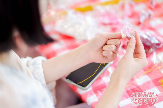 “平时工作圈子小,这次活动认识好多新朋友!刚才歌词接龙,大家抢着接歌词,氛围特别好,感觉一下就熟络了?!?/span>小赵笑着和记者分享,脸上还带着游戏时的兴奋。参与手工丝绒花DIY的小胡也感慨:“和搭档一起做花,从生疏到默契,像一场微型‘协作修行’,很有意思?!?/span>