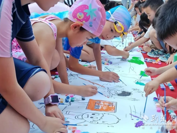 10米巨型防溺水画卷绘制现场,孩子们用画笔勾勒救生圈、警戒线、安全标语,在创作中强化“远离危险水域”的意识?!拔一烁龃蟠蟮木壬?,还要写上‘不能独自去江边’!”孩子的童言童语里,透着满满的安全意识。