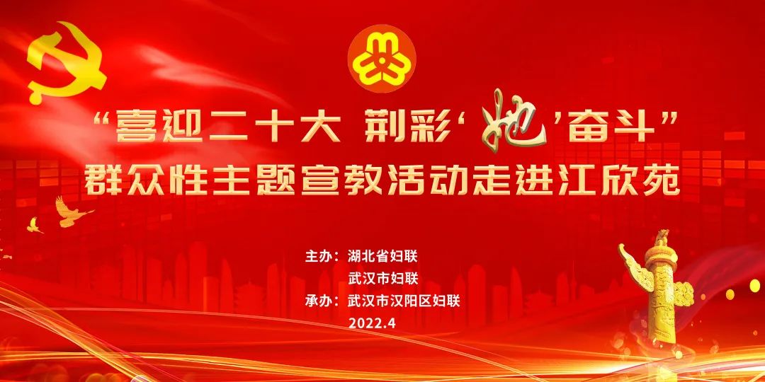 为迎接党的二十大胜利召开,进一步团结引领广大妇女听党话、感党恩、跟党走,凝聚“建成支点、走在前列、谱写新篇”的巾帼力量,湖北省妇联决定在全省范围内深入开展“喜迎二十大,荆彩‘她’奋斗”群众性主题宣教活动,将开展:百个“最美巾帼奋斗者”寻访宣传、千场“巾帼红”系列宣讲、万名女性网民“荆彩有我,点赞接力”线上互动等“百千万”系列宣教活动,旨在进一步激发全省各行各业妇女“增信心、防风险、稳增长、推改革”的奋斗豪情,以优异成绩迎接党的二十大和省第十二次党代会胜利召开。