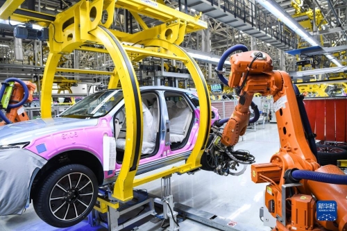 这是2022年6月27日在重庆拍摄的赛力斯汽车有限公司两江智慧工厂作业现场。新华社记者 王全超 摄