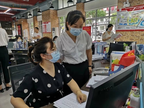 桂小妹(右)正在询问网格员近期居民疫苗接种的情况。长江日报记者 覃柳玮 摄
