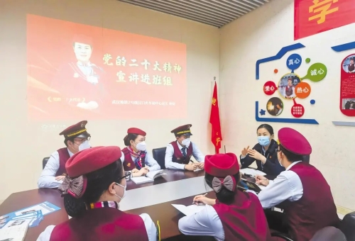 地铁2号线汉口火车站共有42名员工,多为90后、00后年轻人。宣讲前,姚婕反复学习习近平总书记系列讲话精神和党的二十大报告。