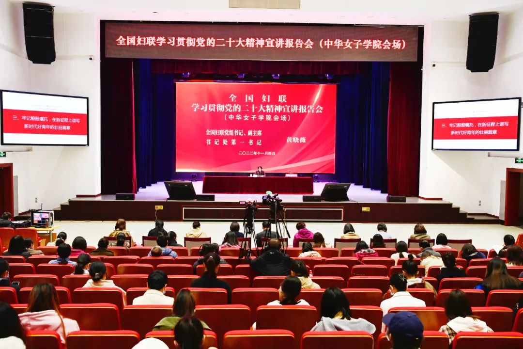 11月4日,全国妇联学习贯彻党的二十大精神宣讲报告会在中华女子学院举行。全国妇联党组书记、副主席、书记处第一书记黄晓薇作宣讲报告,并与师生们交流互动。