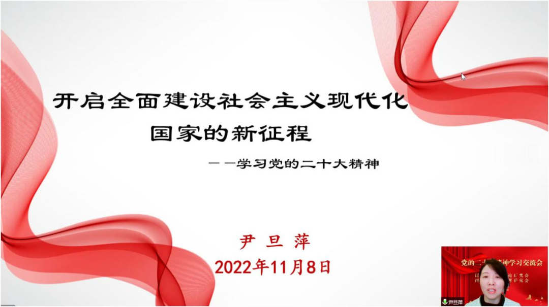 省妇女理论研究会会长、中南民族大学马克思主义学院尹旦萍教授以《开启全面建设社会主义现代化国家的新征程——学习党的二十大精神》为题,分别从过去五年的工作和新时代十年的伟大变革、开辟马克思主义中国化时代化新境界、中国式现代化的使命任务、全面建设社会主义现代化国家的重点部署、建设社会主义现代化国家关键在党这五个方面,对党的二十大精神进行了全面系统深入的宣讲和解读。